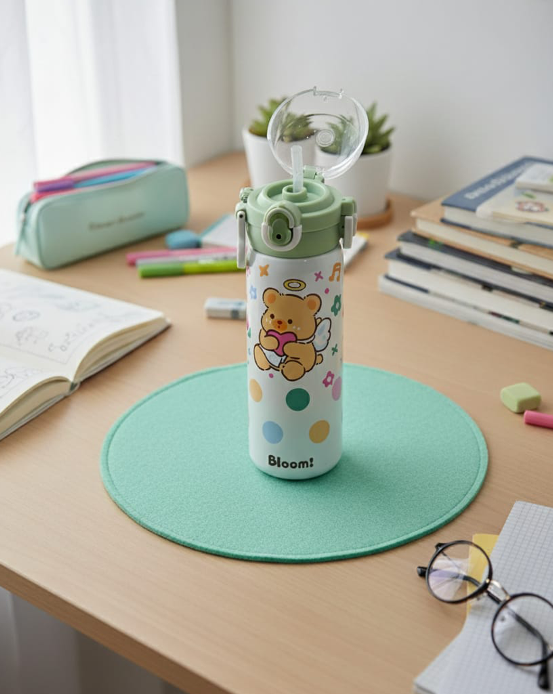 Make every sip fun with BearySip โ the cutest bottle your little one will love! Designed with an adorable bear print, soft pastel lid, and easy flip-top straw, itโs perfect for school, playdates, or adventures. Lightweight, leak-proof, and BPA-free โ BearySip keeps drinks fresh and smiles wide all day long!