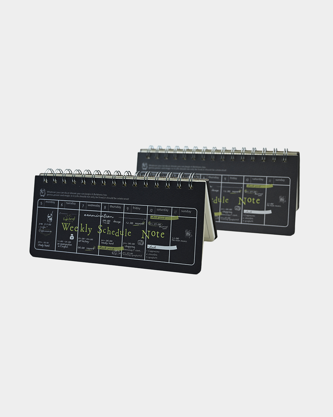 Stay organized in style with the BlackBoard Planner β a flip-style weekly scheduler designed for your desk. With its bold black pages and sleek spiral design, it's perfect for tracking tasks, meetings, and goals at a glance.