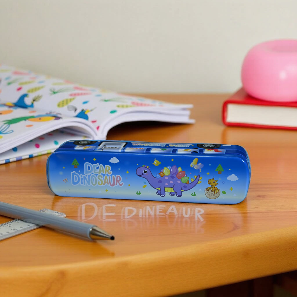 Bring prehistoric fun to your desk with the DinoPop Box! Featuring a cheerful purple dinosaur and playful jungle friends, this vibrant blue pencil box keeps all your stationery safe in dino-mite style. Perfect for little adventurers who love to learn and explore!
