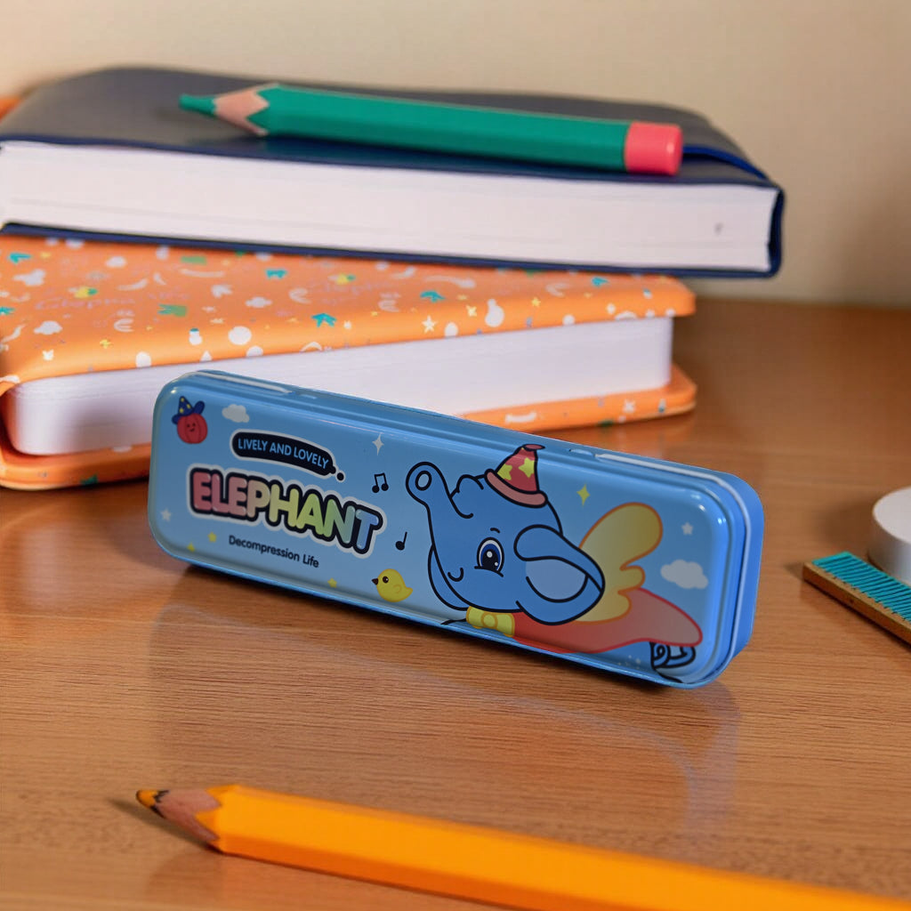 Let your child's creativity take flight with the EleMagic Box! Featuring a cheerful flying elephant in a party hat, this adorable pencil box adds fun, color, and charm to every school day. Made with a sturdy metal body, it's perfect for keeping stationery safe and organized β with a touch of magic!