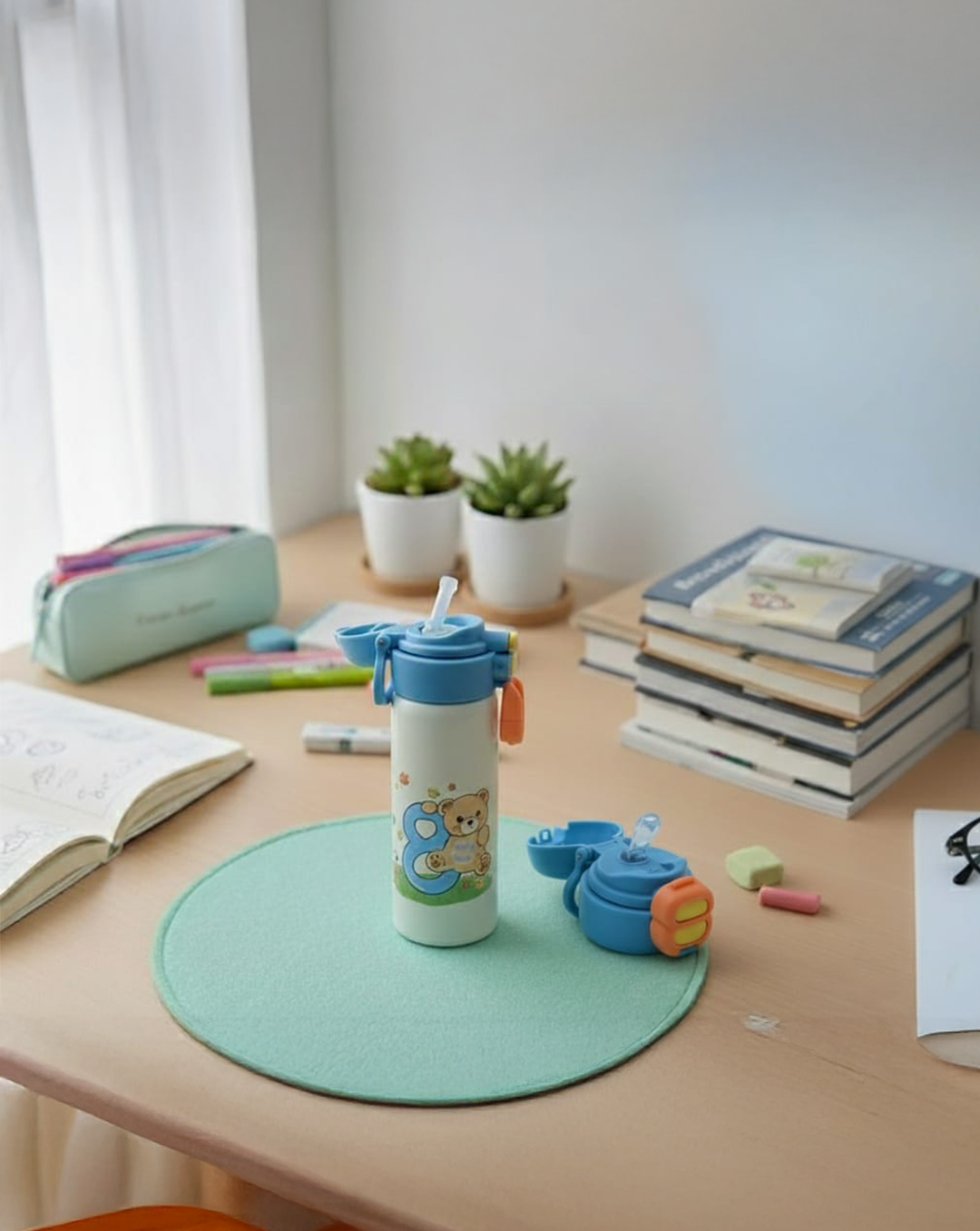 Keep every sip joyful with TeddyJoy Flask — the perfect companion for your little one’s day! Designed with an adorable bear print and a leak-proof flip lid, it keeps drinks warm or cool for hours. Lightweight, durable, and easy to carry — TeddyJoy makes hydration fun, safe, and super cute!